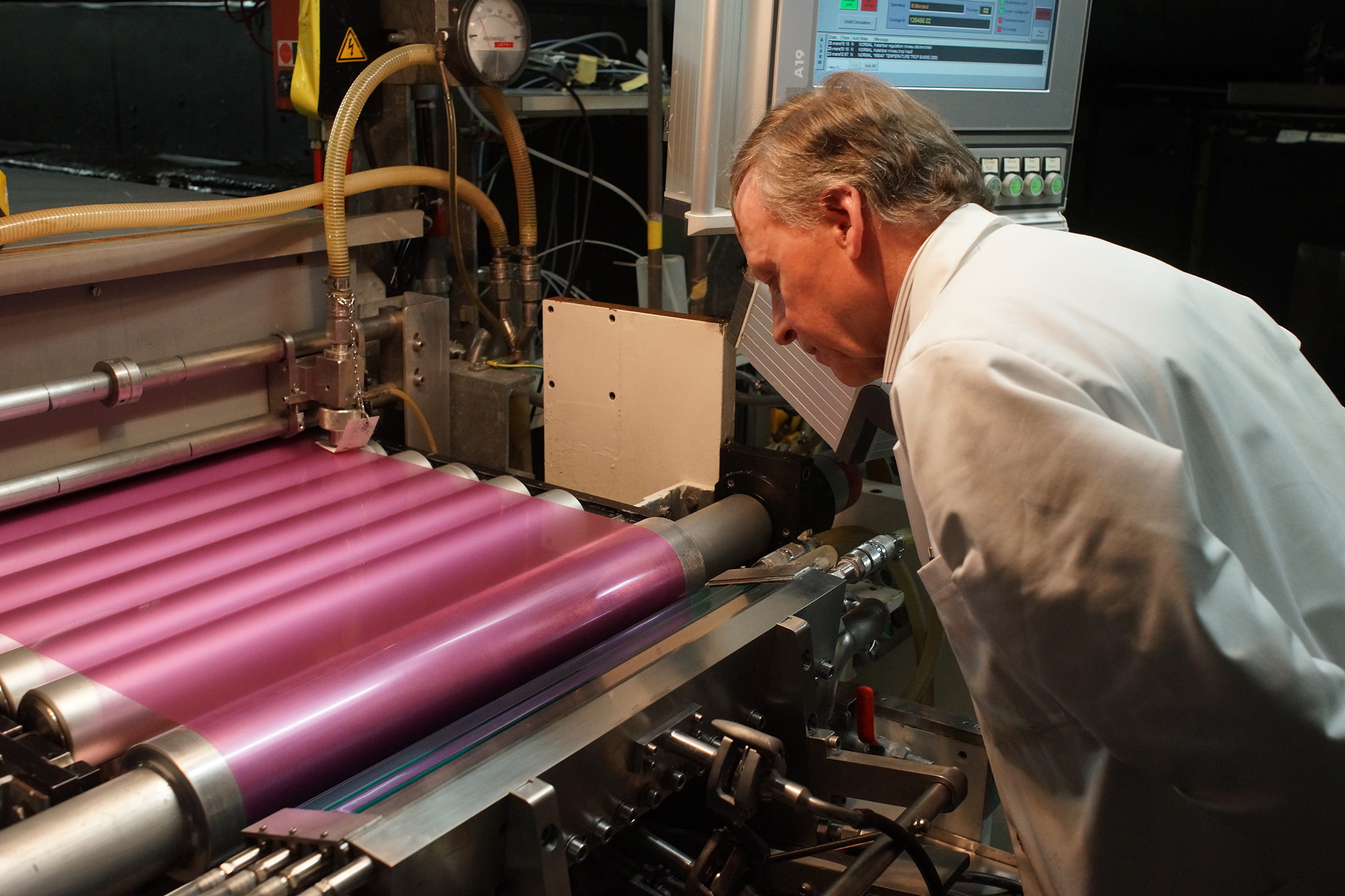 Machine “E” (franz.) ist die weltweit letzte “kleine große” Filmbeschichtungsmaschine. Sozusagen die größte betriebsbereite Versuchsmaschine der Welt. Da der Markt für analoge Produkte heute überschaubar ist, kämpfen Hersteller die noch aus der alten Zeit kommen damit, dass ihre Maschinen oft zu groß sind für den heutigen Bedarf. Das limitiert sie in ihren Möglichkeiten eine hohe Bandbreite an Produkten zur Verfügung zu stellen, da sie nicht unter bestimmte Begusslosgrößen fallen dürfen. Wir wollen mit dem Umbau der kleinen Maschine zur Produktionsmaschine eine den heutigen Anforderungen entsprechende Film- und Papierbegießmöglichkeit schaffen, um diesem Dilemma zu begegnen. Konkret bedeutet es, dass diese Maschine die Voraussetzung dafür ist Produktvarianten oder ganze Produkte möglich zu machen die es früher mal gab, dann aber zwischenzeitlich eingestellt werden mussten. Beispiele sind z.B. mehr Oberflächenvariationen (glänzend, halbmatt, totmatt) und Trägerfärbungen beim Papier, Niedrigempfindliche Filme, Orthochromatische Filme, Infrarotfilme etc.