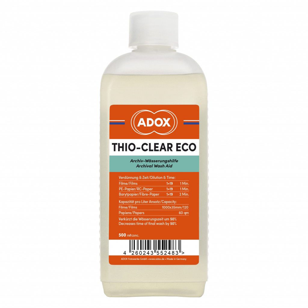 ADOX THIO-CLEAR ECO stellt sicher, dass Ihre Filme und Fotopapiere archivfest ausgewässert werden indem es den Fixierer schneller aus der Gelatineschicht löst. Es verkürzt die Wässerungszeit um 50% und spart so kostbares Trinkwasser. Gleichzeitig ist es frei von Gefahrstoffen und belastet die Umwelt nicht.