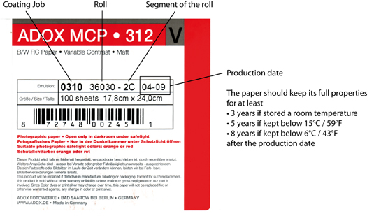 Questa carta è prodotta rispettando i parametri qualitativi delle precedenti carte Agfa della linea “Agfa Multicontrast Classic”. La ADOX MCP 310/312 è una delle carte fotografiche più avanzate del mondo. La sua speciale emulsione consiste nella fusione di quattro emulsioni prodotte separatamente, che consente di ottenere una gamma tonale estremamente ampia. La carta è realizzata in materiali grezzi di alta qualità, le cui proprietà vengono accuratamente controllate e testate prima di passare alla fase dell’emulsione. Con questa carta otterrete dei bianchi e neri con una fantastica gamma tonale, dai colori chiari brillanti alle ombre nitide e ben differenziate. La versione lucida restituisce delle immagini estremamente brillanti (soprattutto con l’utilizzo di un asciugatore a infrarossi). La versione “matt” produce dei neri profondi, tuttavia con una struttura superficiale quasi impercettibile. La carta è molto facile da trattare e si asciuga velocemente. Caratteristiche: *La superficie della MCP 312 è simile alla Ilford 44M (Pearl) e la Foma 313 (Velvet). Download: Scheda tecnica (tedesco e inglese) Numero di emulsione e data di produzione: L’esempio qui sopra risale ad aprile 2009. Tutte le carte ADOX MCP senza indicazione della data di produzione sono state fabbricate a settembre 2008. Prodotto in Germania. *”Agfa Multicontrast Premium” is a registered trademark of AgfaPhoto GmbH i.L. Carta Premium politenata multicontrasto