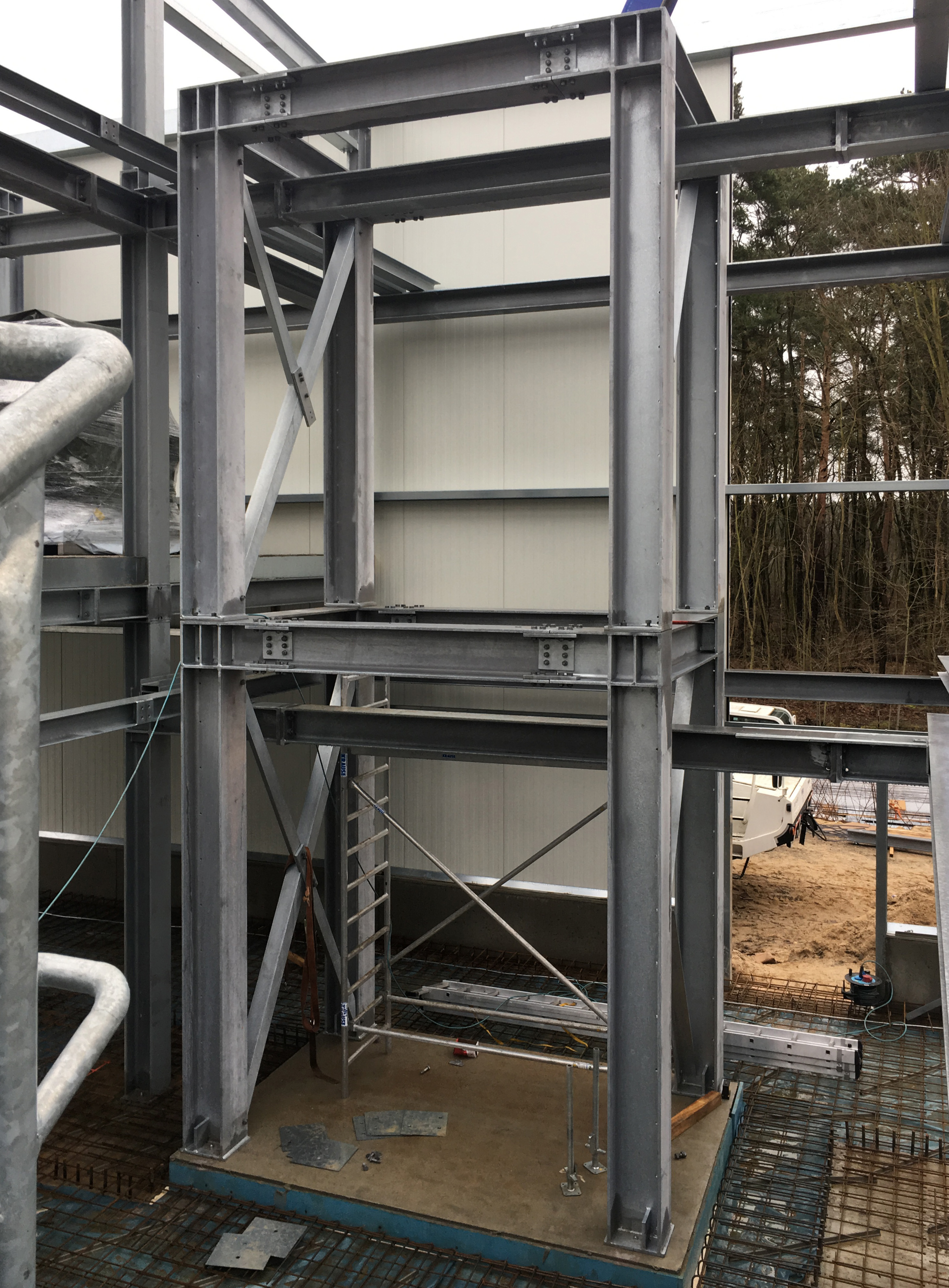 Heute hat die Montage der Wandelemente begonnen. Da die Treppen auch schon montiert sind, erkennt man schon gut die Etagen in der zukünftigen Gießmaschine. ...