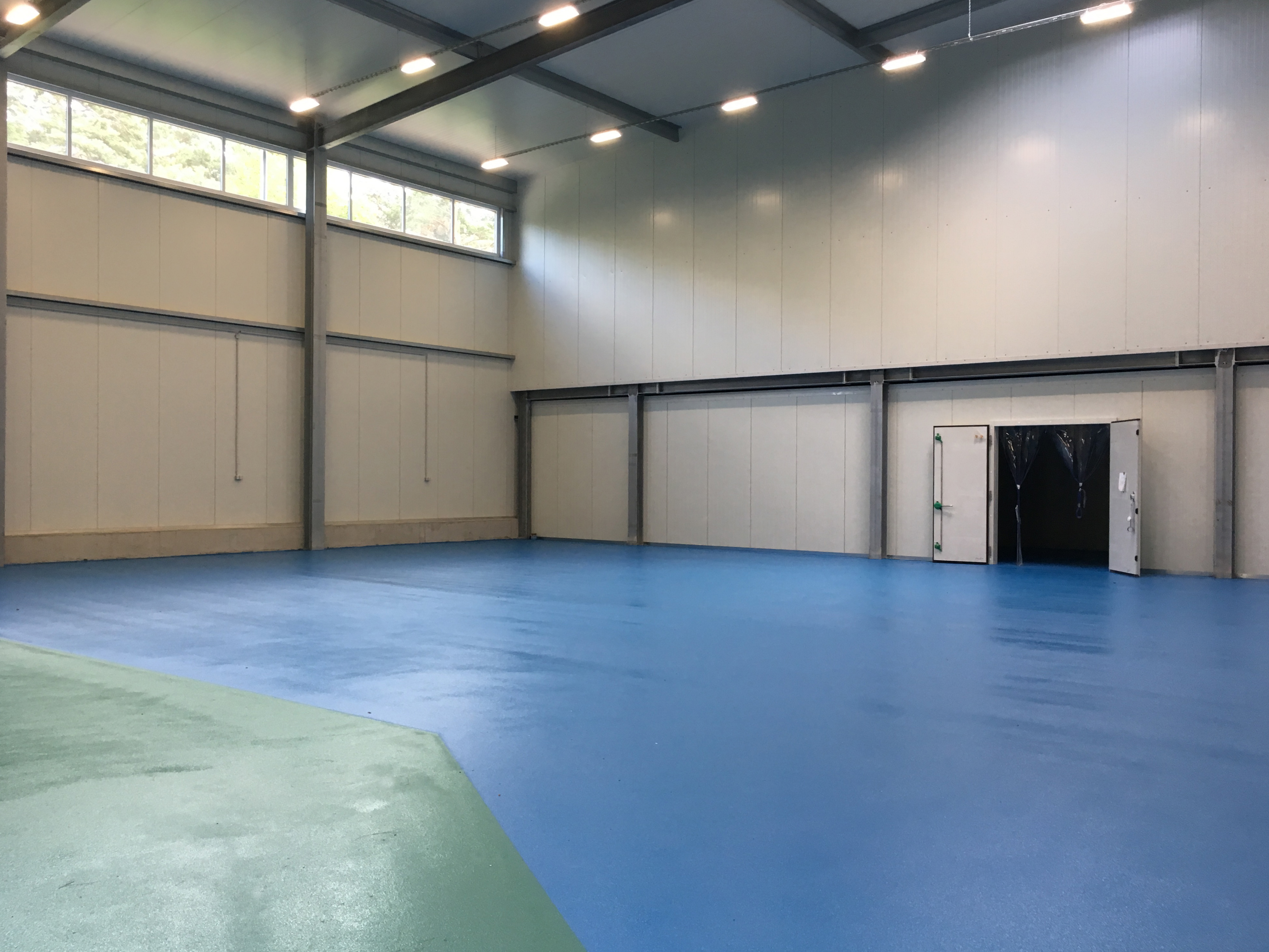 Die Böden sind beschichtet worden. Die zwei Farben im Lager trennen das Wareneingangs und Fertigwarenlager. In der Gießmaschine haben wir glänzendes schwarz. Die Chemiproduktion hat ein freundliches Blau. ...