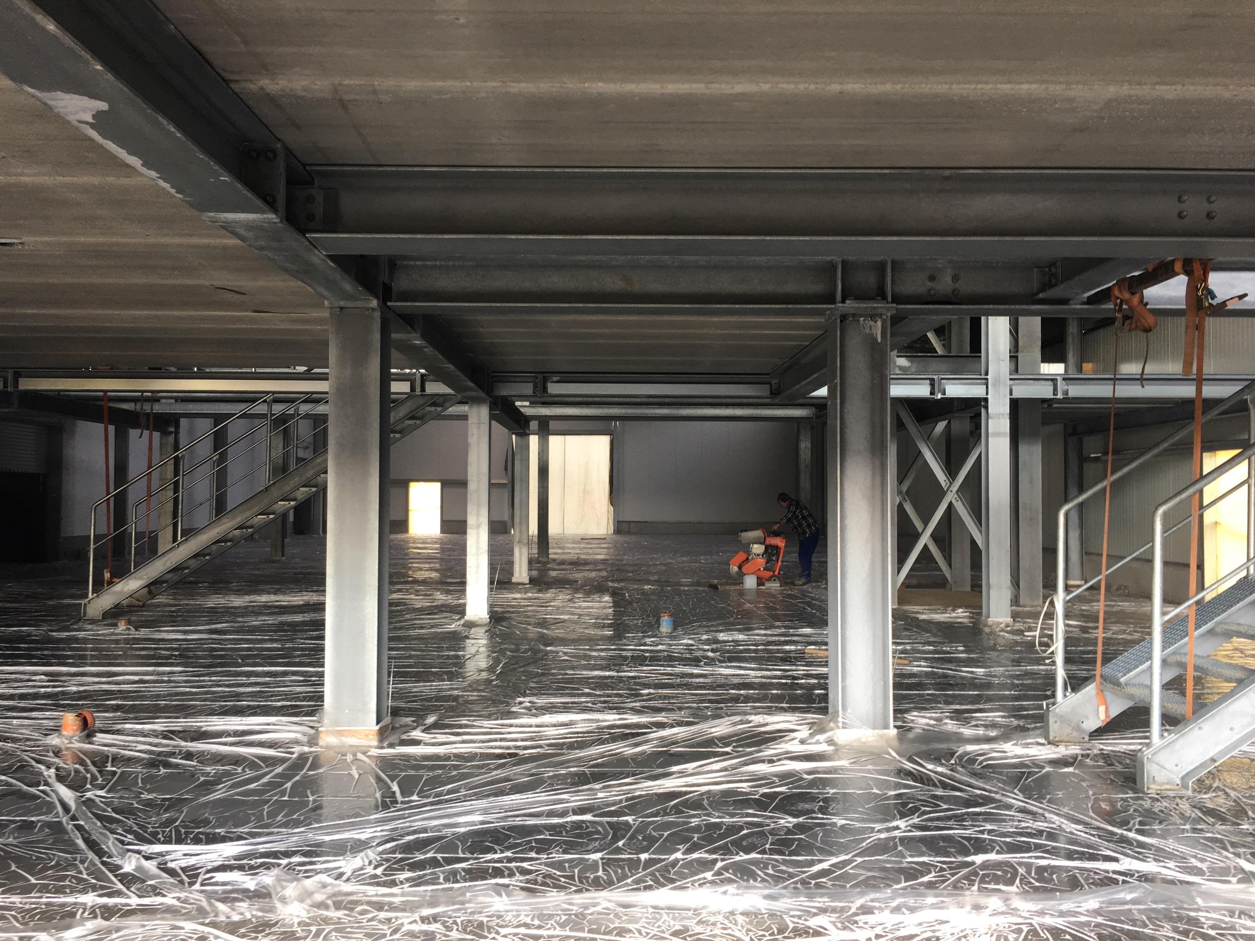 Today the concrete floor has been poured and polished. Now it needs to dry for about 4 weeks. After this the works can continue.