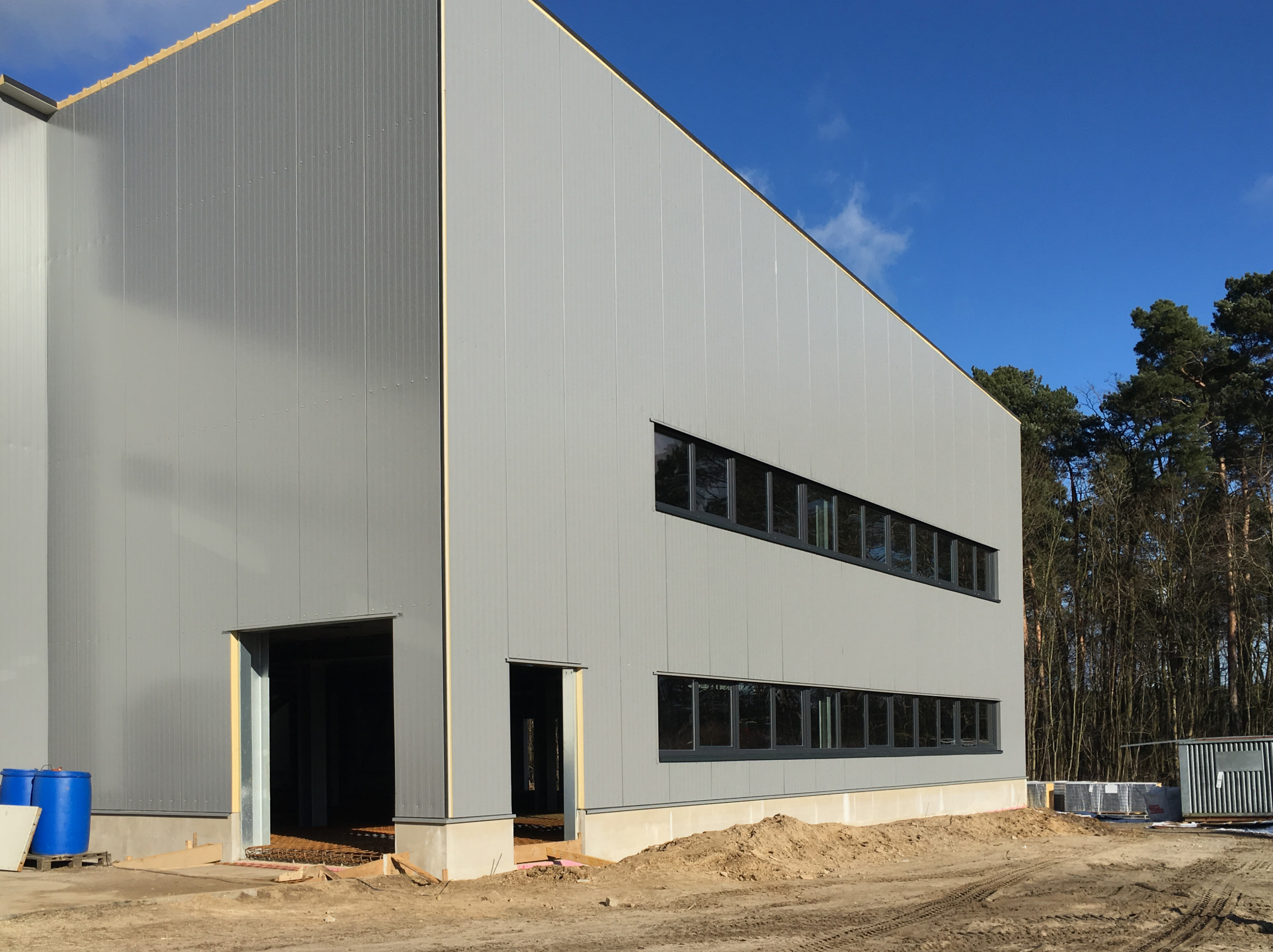 Jetzt fehlen noch die Tore und dann können wir die Bodenplatte gießen. Unser Stapler ist schon gantz nervös. Er fährt ständig im Kreis bis seine Batterie leer ist und freut sich auf die Bodenplatte.