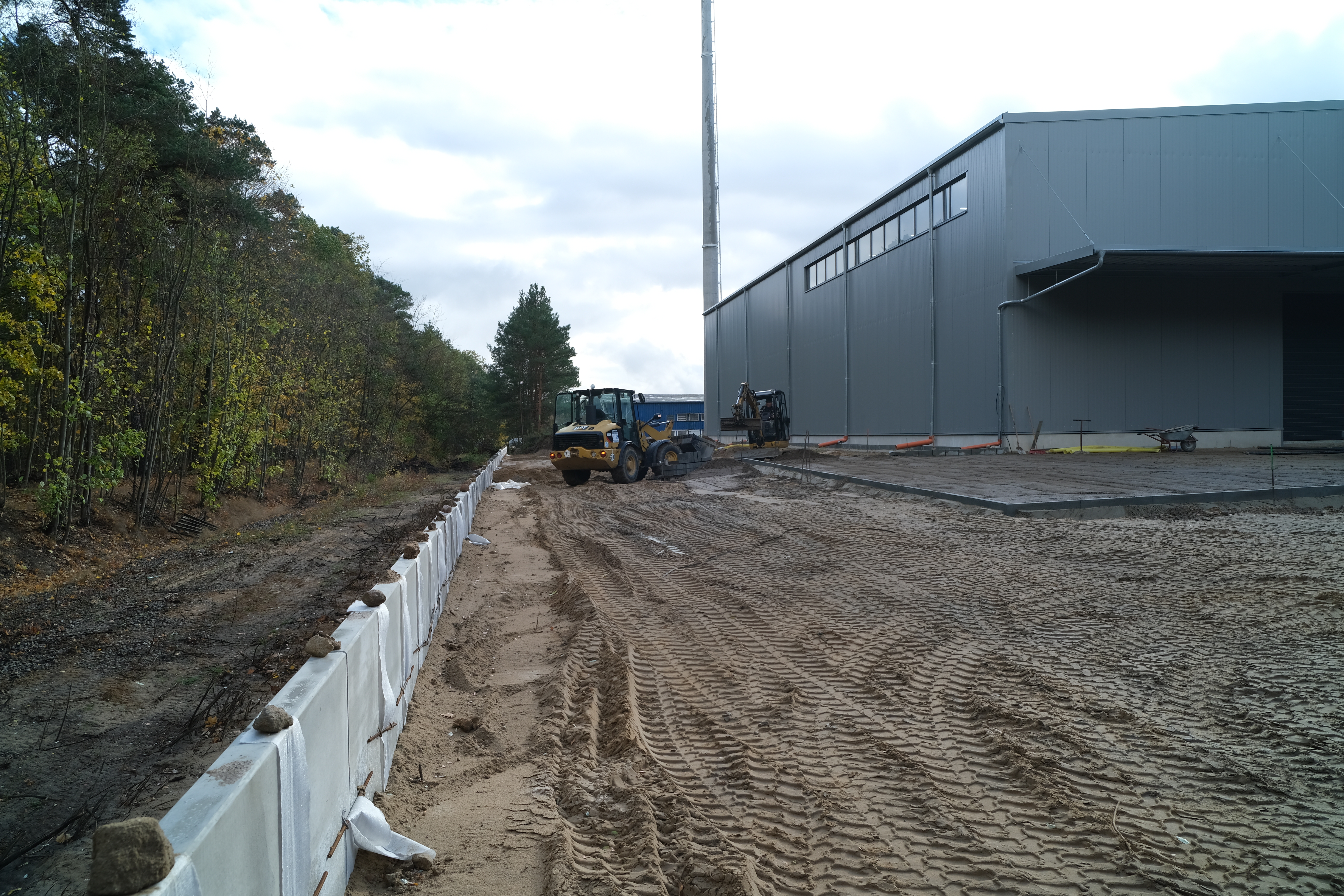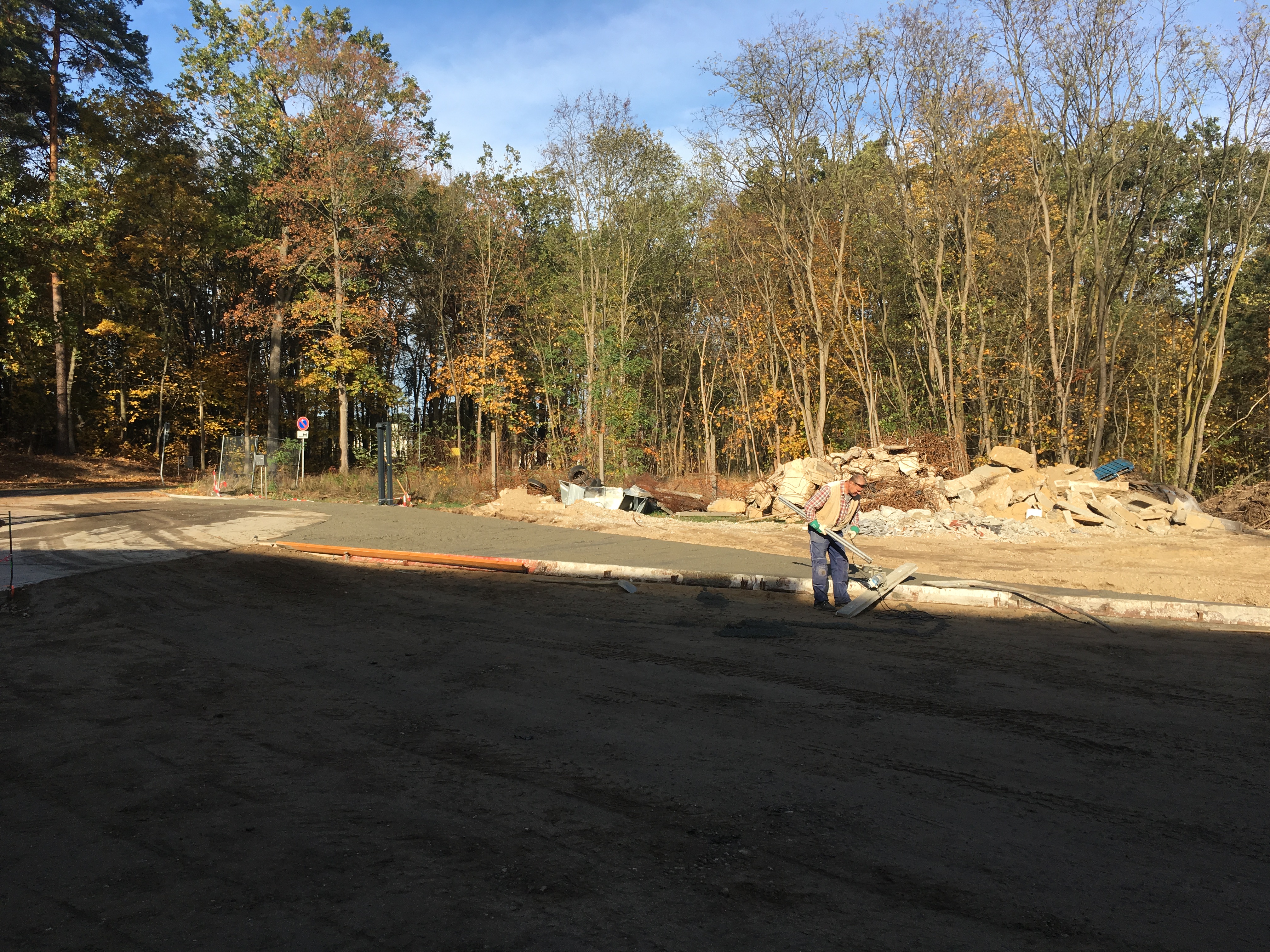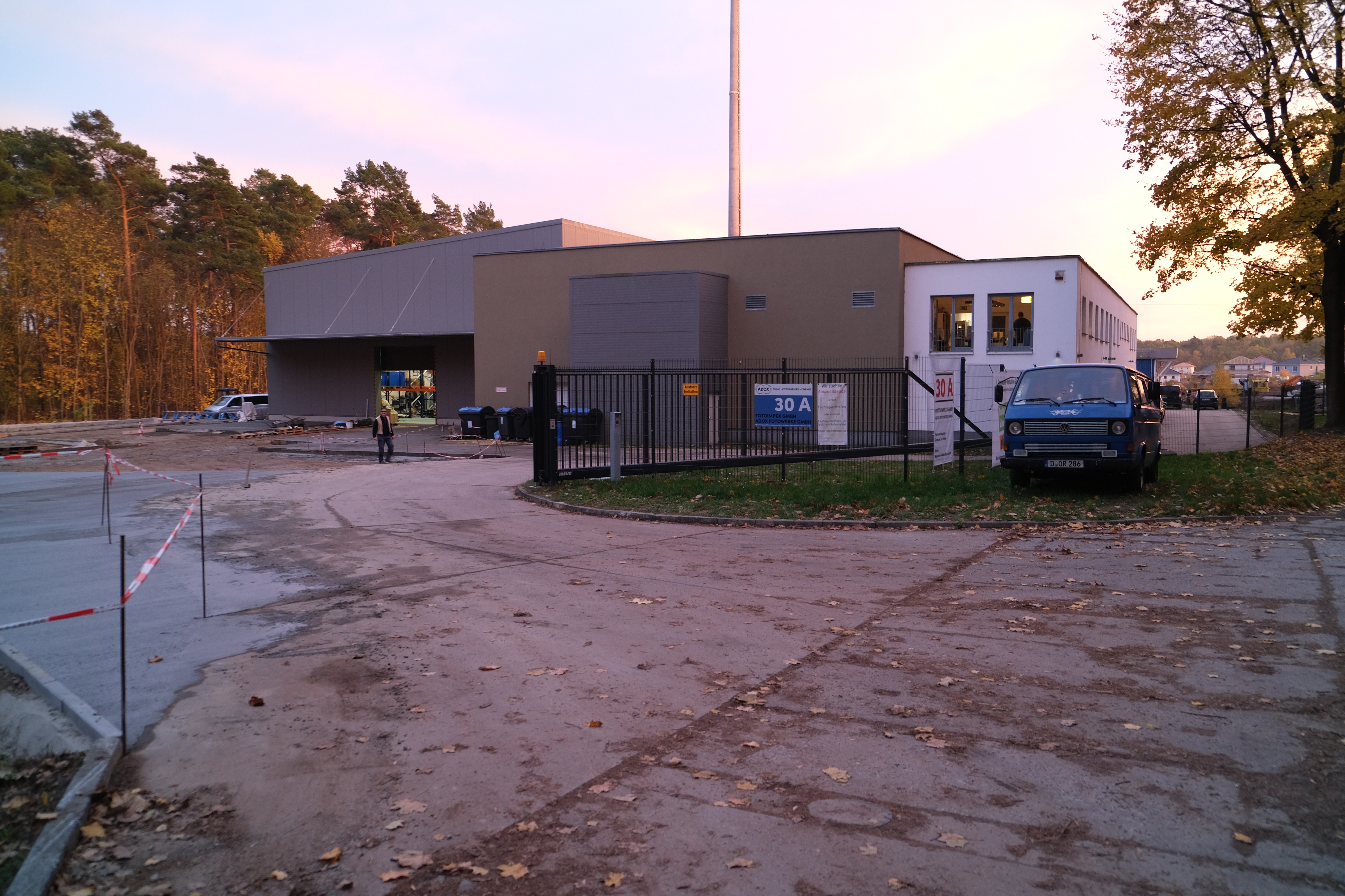 For 7 months the world ended with a bent metal piece below the main gate because there was a 10 inch gap and Brandenburg´s sand below. No forklift, no palette lifter and no heavy equipment rollers could pass this barrier. What was inside stayed in and what was outside needed to be carried with a tracktor. In July the good of the totally booked out German building industry had mercy on us and we were allowed to sign a contract. This week it all happened: