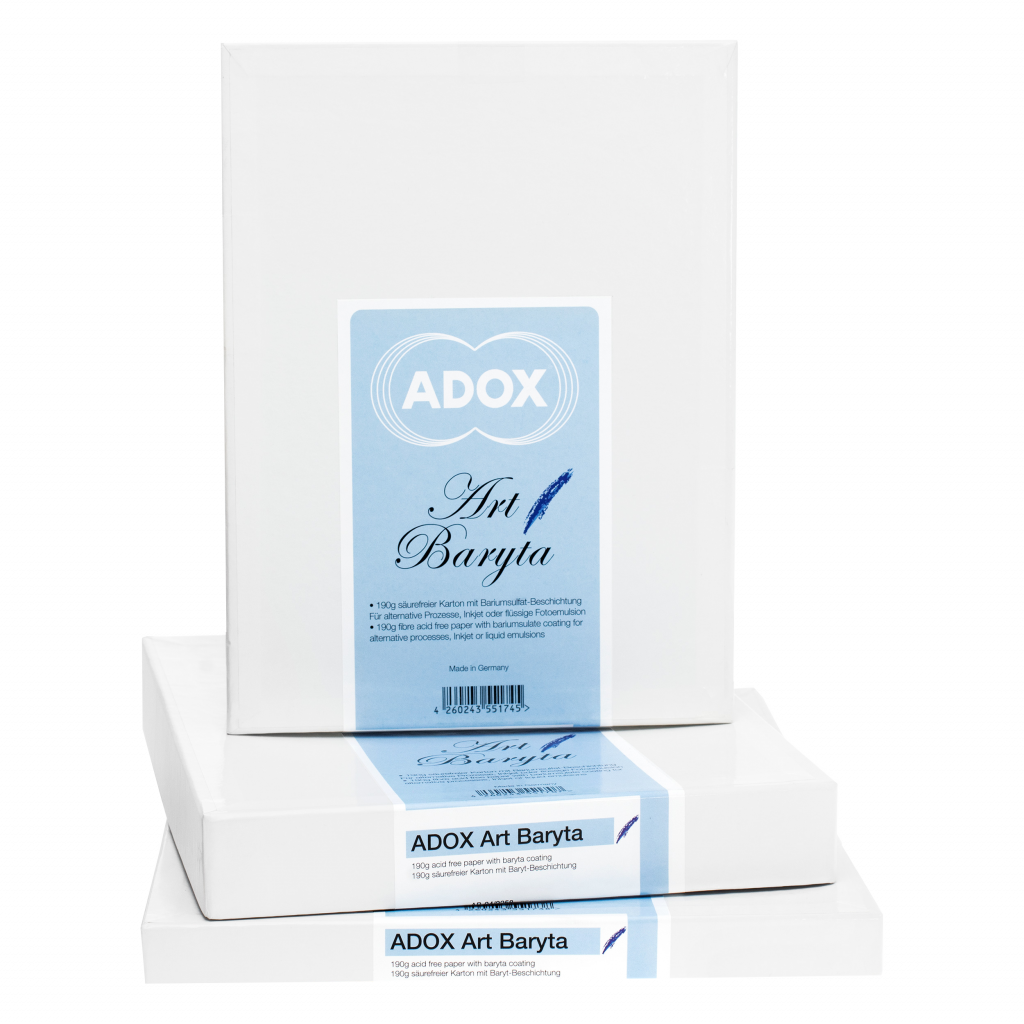 Heavy paper of the highest photographic grade quality available. Very fine brushed paper fibers which will not be visible in your image. Waiting to be coated by you with your own or commercially available emulsions or to be used in alternative printing processes like carbon printing and others. The ideal paper recommended by R. Mowrey for his AZO-Type emulsion featured in his “survival guide for the analogue photographer in the digital age”. Produces a glossy finish if the respective emulsion is not matted. The gloss can be enhanced by the application of a super-coating made up from diluted ADOX COLLOIDA gelatin in a second coating step. Ideal for coating with coating blades. Brush strokes from brush coating will be very accentuated due to the prevention of bleeding from the paper.