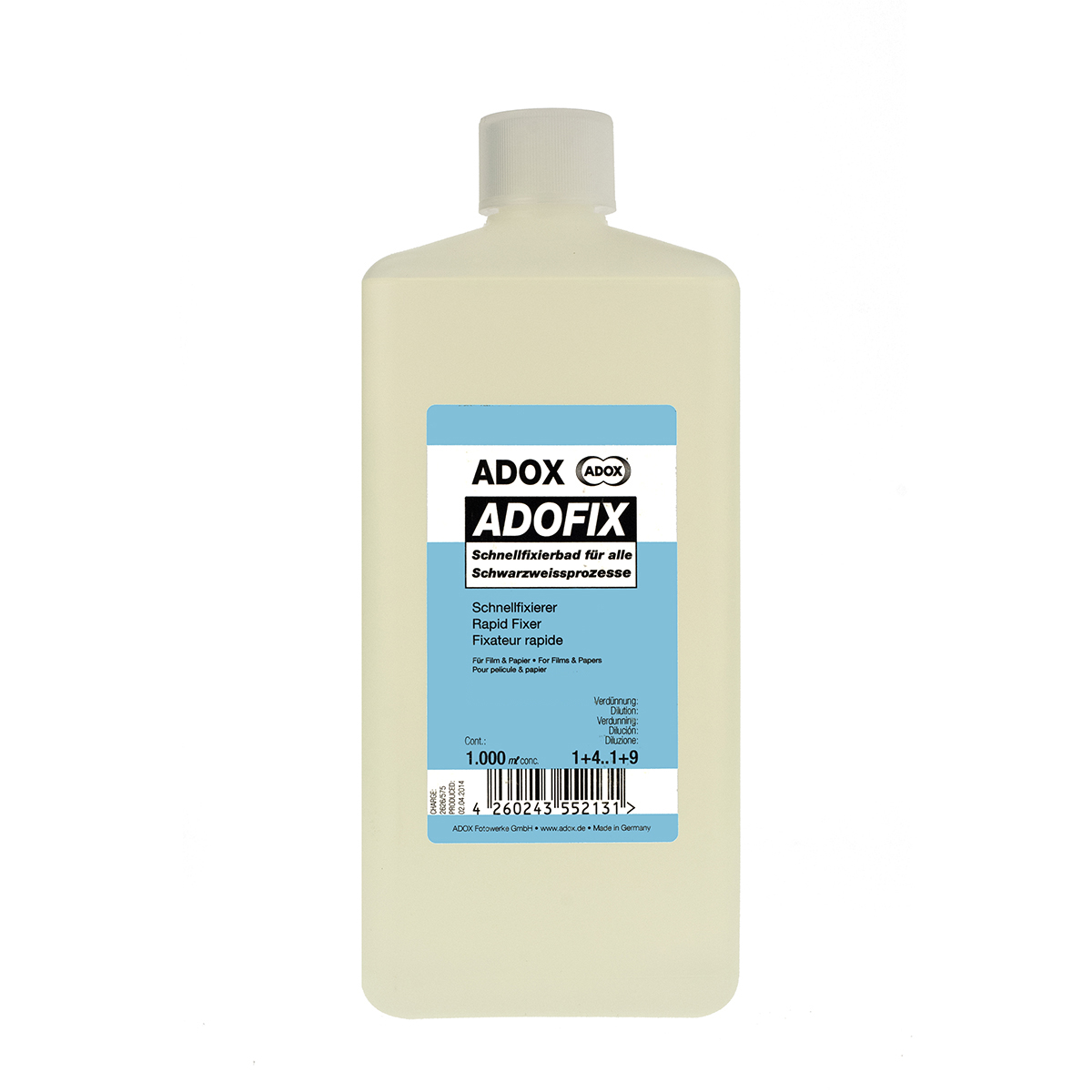 ADOFIX è un fissante efficace e rapido, adatto ai processi in vaschetta, tank o macchina. Con un litro di concentrato potrete ottenere fino a 10 litri di soluzione pronta all’uso.
