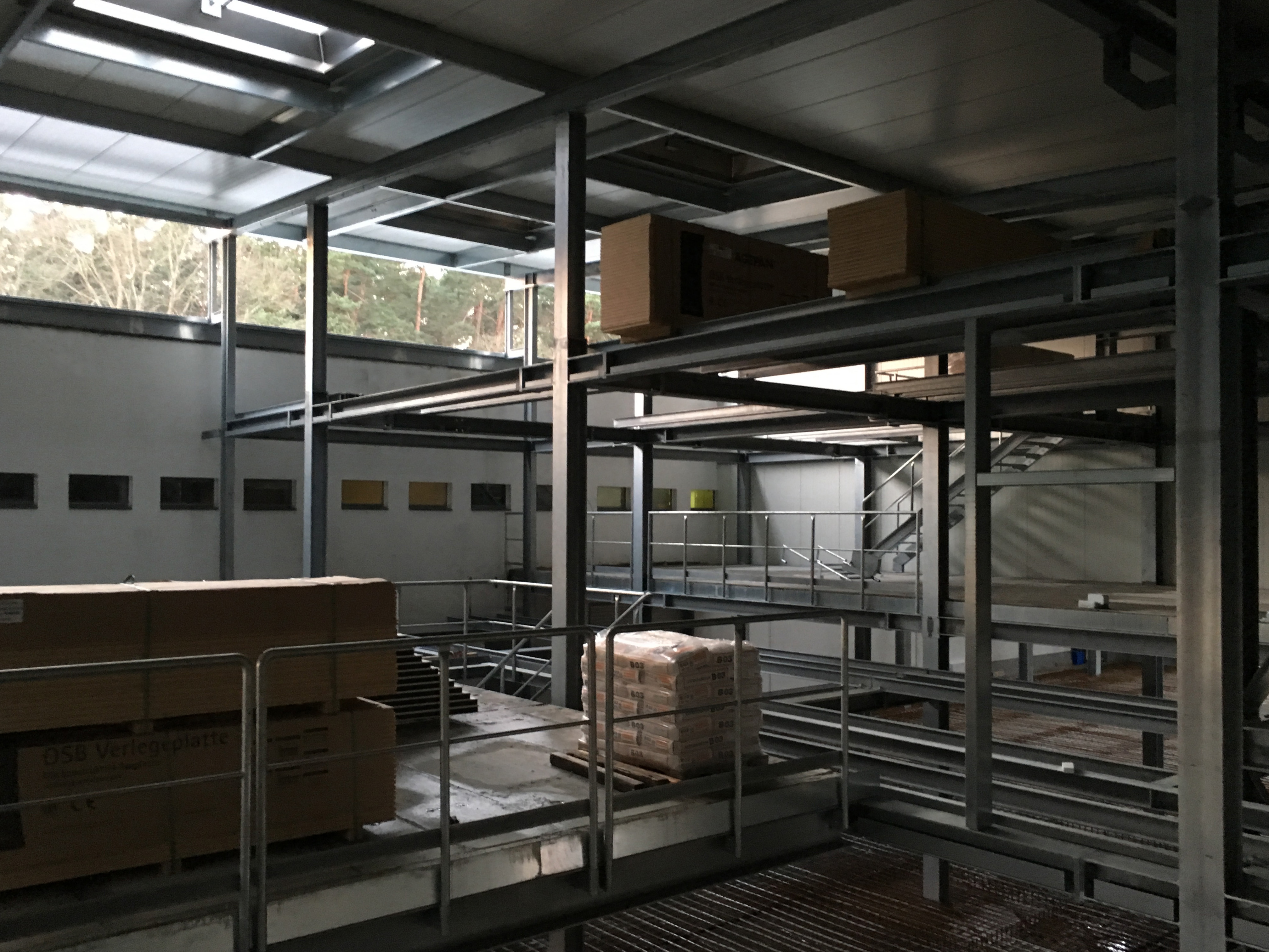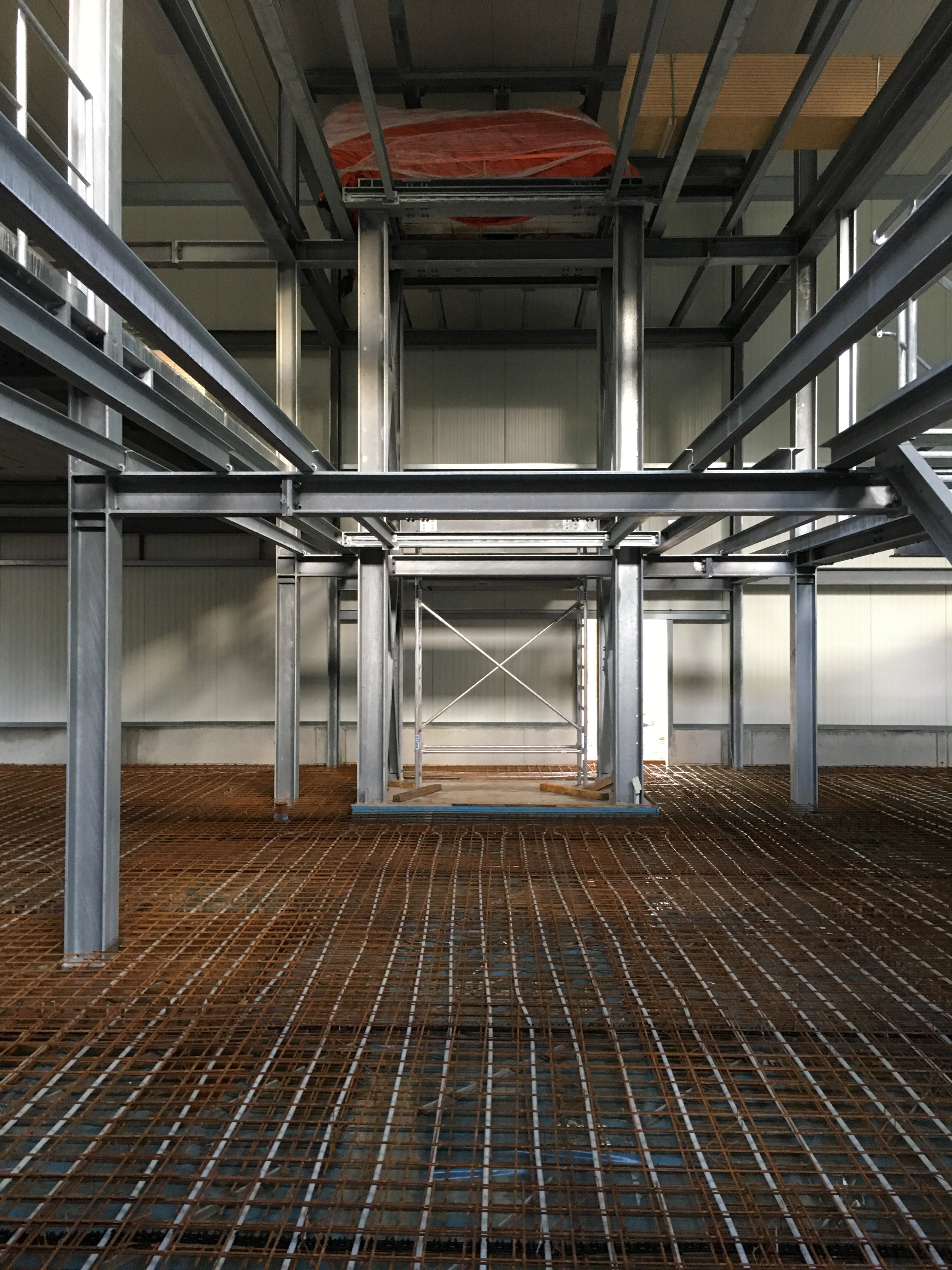 On top of the coating tower “the coater” resides. The white pipes are the floor heating.