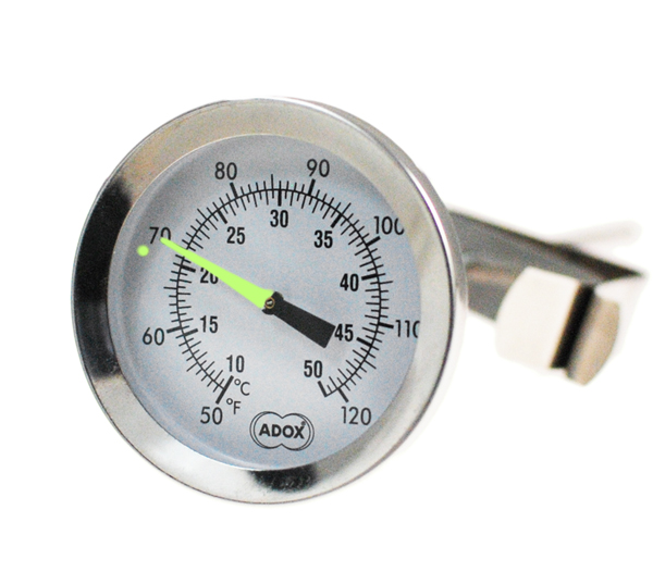 Egal ob Filmentwicklung, Papierentwicklung Farbe oder Schwarzweiss. Das ADOX Thermometer misst präzise, schnell und zuverlässig.