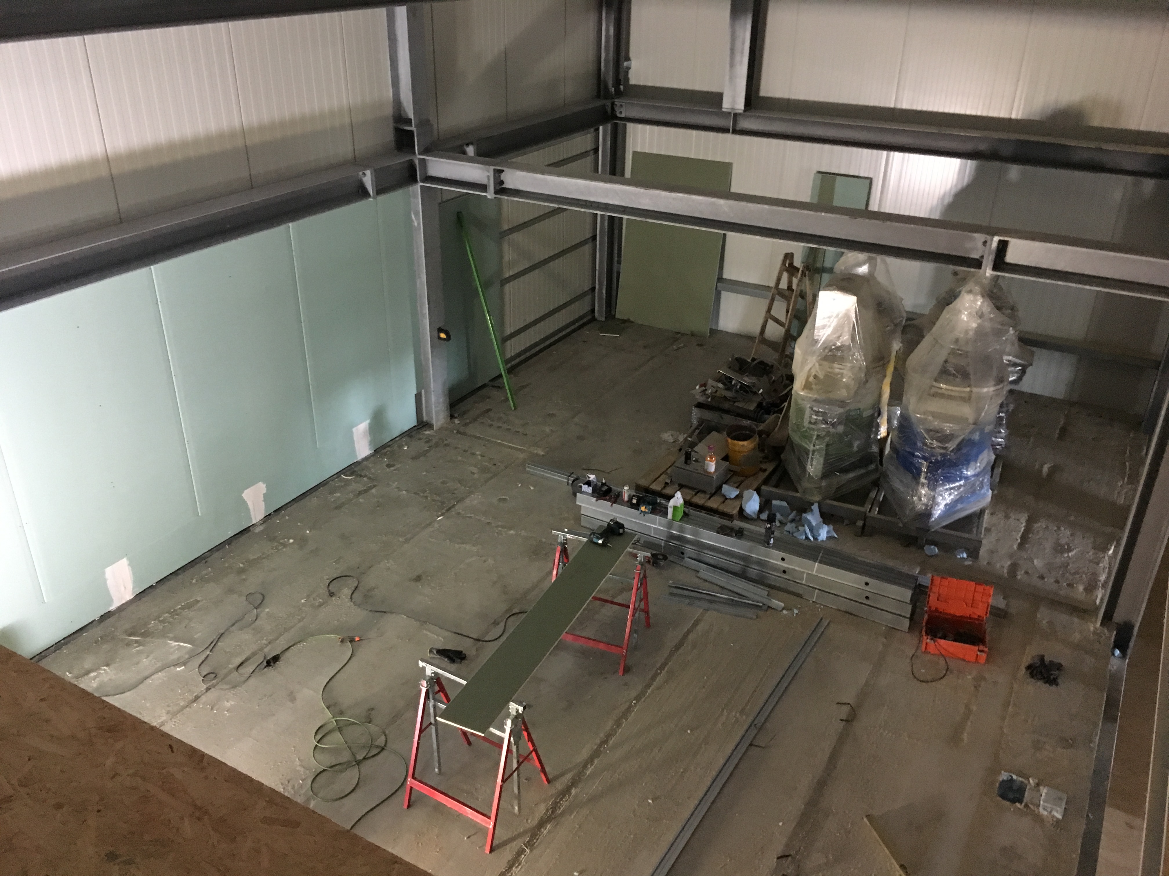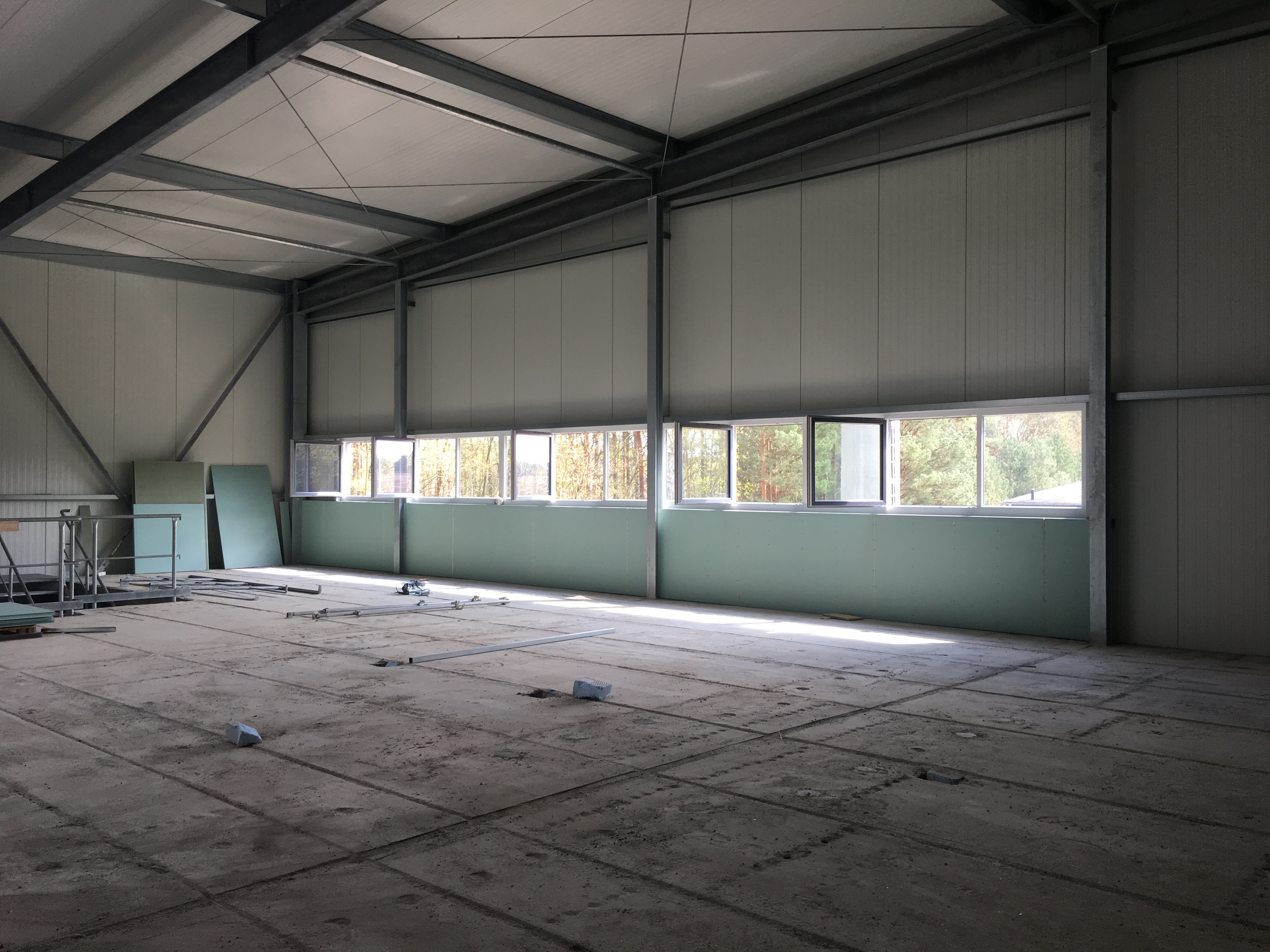 In March and April works continued as planned. The coating alley now has the walking floors, the coolhouse doors are mounted and the melting room is being installed.